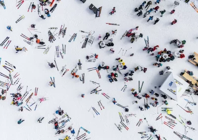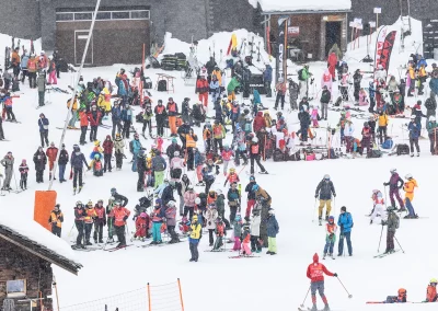 L’arrivée de la course se trouve à la station intermédiaire de la télécabine de Zinal, devant le restaurant de Sorebois. Les accompagnants piétons sont donc les bienvenus.